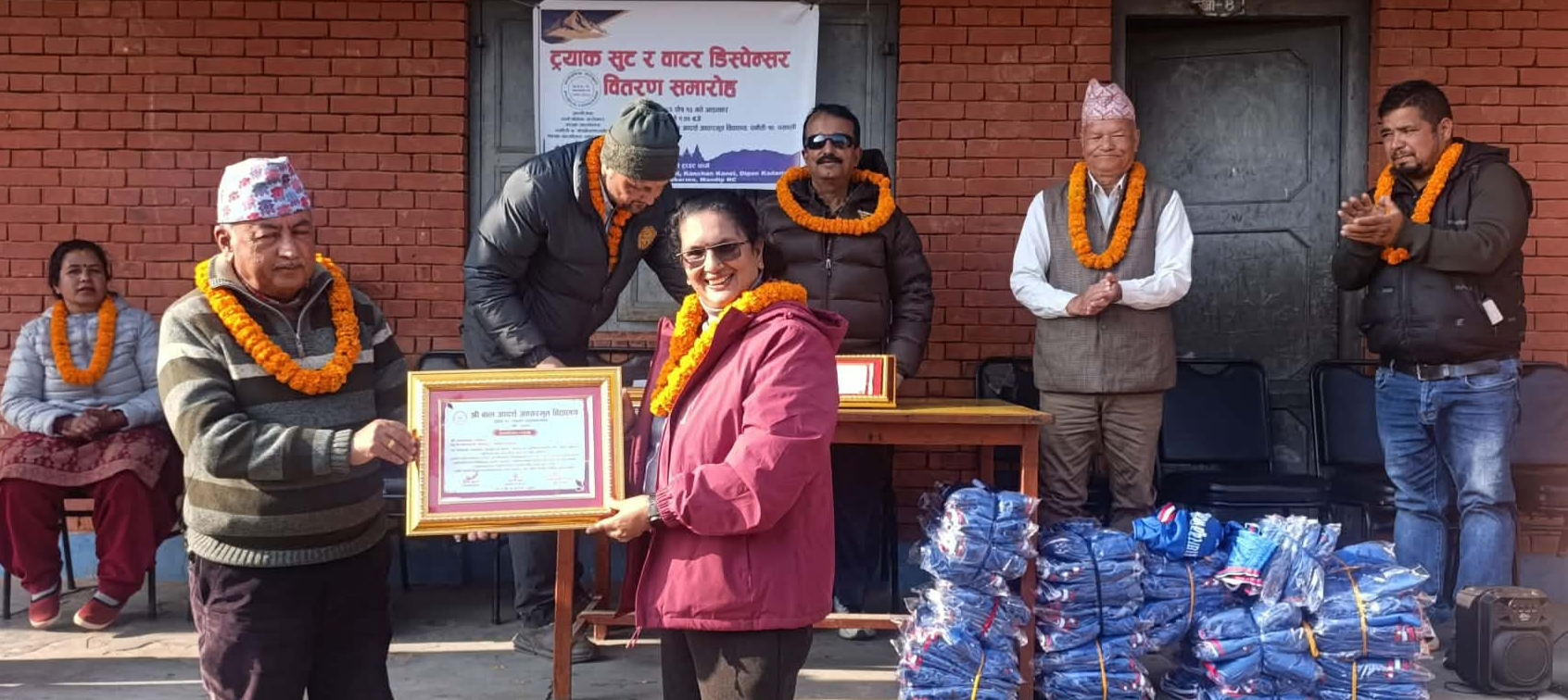 विद्यालयको माग अनुसार कार्यक्रममा ५० सेट न्यानो विद्यार्थी पोशाक (ट्रयाकसुट) वितरण गरिएको छ। हाल अमेरिकामा बसोबास गरिरहेका तर नेपालप्रति निरन्तर समर्पित कञ्चन कणेल, केजिया कणेल, मन्दिप केसी, सन्ध्या शर्मा र दिपेन कडरीयाको सहयोगमा पोशाक वितरण गरिएको आयोजकले जनाएको छ।